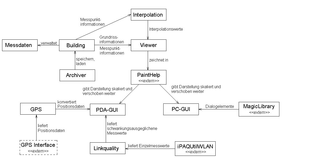 Archiver Modul Building Modul GPS Modul Interpolations Modul Linkquality Modul Messdaten Modul Modulstruktur PC-GUI Modul PDA-GUI Modul Viewer Modul