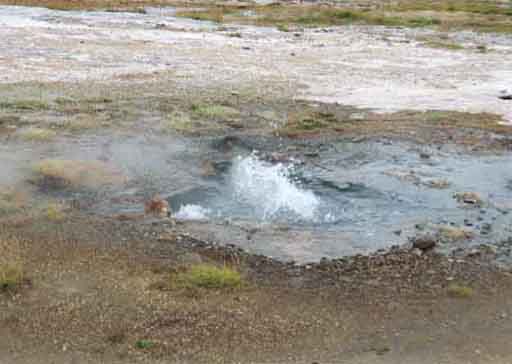 Der Stori Geysir. Seit Jahren ist er schon nicht mehr ausgebrochen, da das empfindliche Gleichgewicht welches den Ausbruch eines Geysirs steuert durch den Menschen gestört wurde. Viele warfen Steine hinein oder mit der Hilfe von Seife wurde die Oberflächenspannung des Wassers herabgesetzt, um damit einen Ausbruch zu provozieren. |
