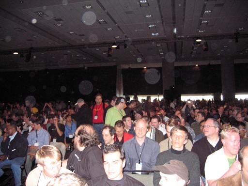 Kurz vor dem Anfang der Keynote werden die Zuhörer eingelassen |